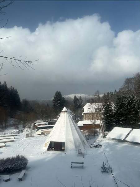 Szukasz klimatycznego miejsca na małą uroczystość, warsztaty albo sesję zdjęciową? Nasze tipi stoi na zielonej polanie przy pensjonacie Leśne Źródło.
